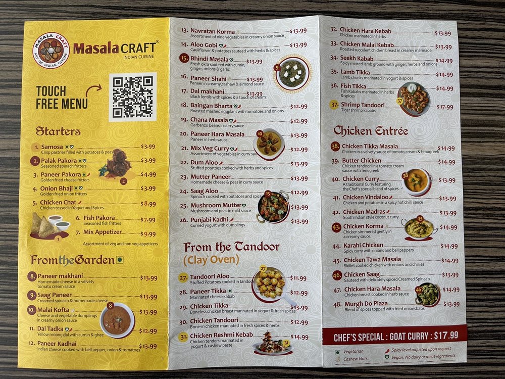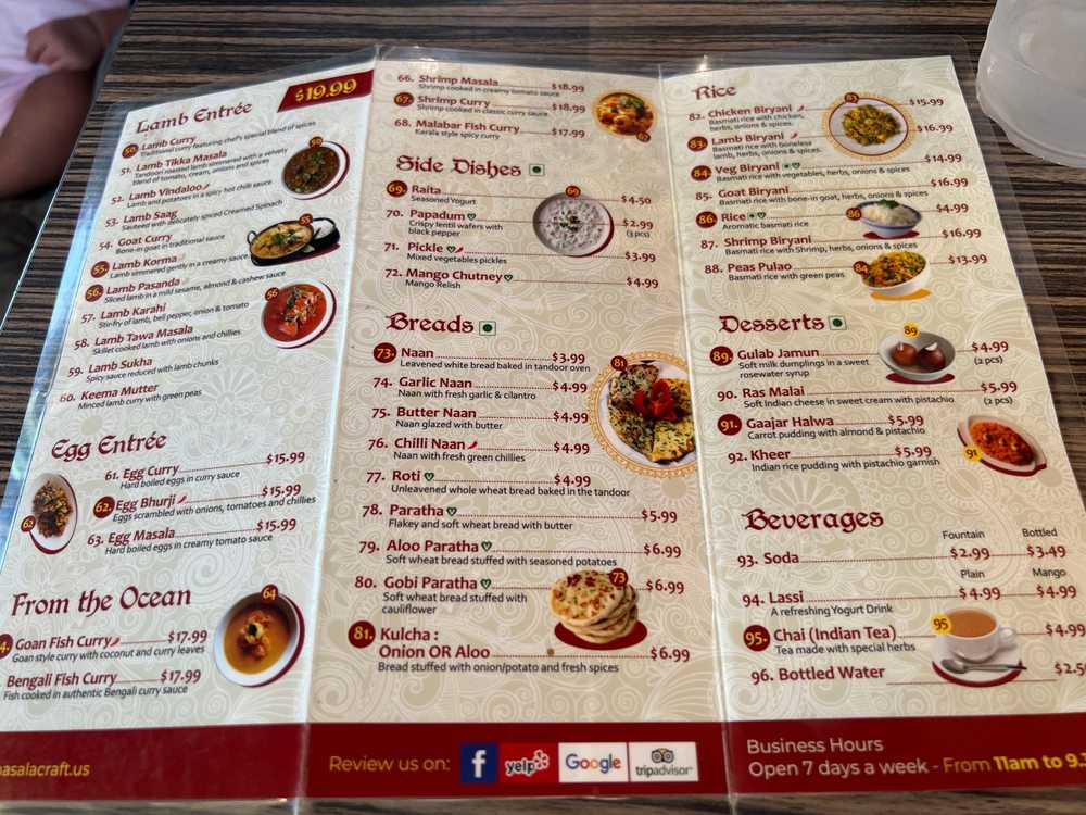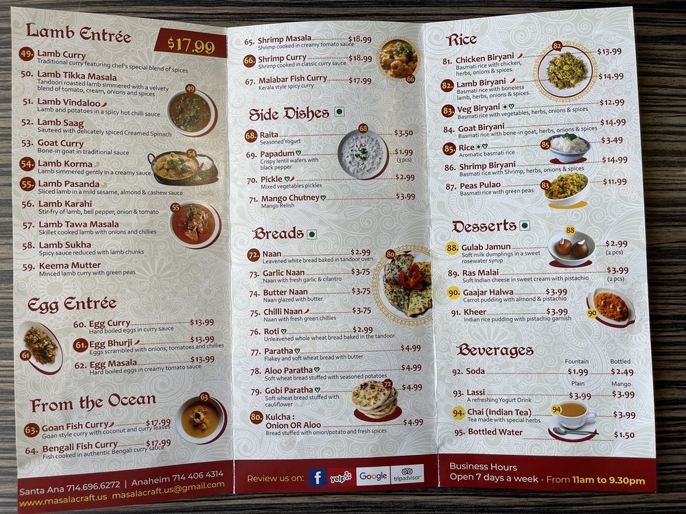 MasalaCraft Indian Cuisine offers a range of Indian dishes with a focus on vegetarian and vegan options. Located in Anaheim, CA, the restaurant provides a casual dining experience with options for takeout, delivery, and reservations. The menu includes appetizers like Aloo Tikki, Chicken Chat, and Fish Pakora, along with beverages like Mango Lassi and Masala Tea. Customers have praised the flavorful dishes such as Butter Chicken, Chicken Tikka Masala, and Sag Paneer, as well as the attentive service. Despite some cleanliness concerns, the overall dining experience is enjoyable, with ample food selections and a welcoming ambiance. Whether you're craving traditional Indian flavors or looking to explore new dishes, MasalaCraft Indian Cuisine offers a satisfying dining experience worth trying.